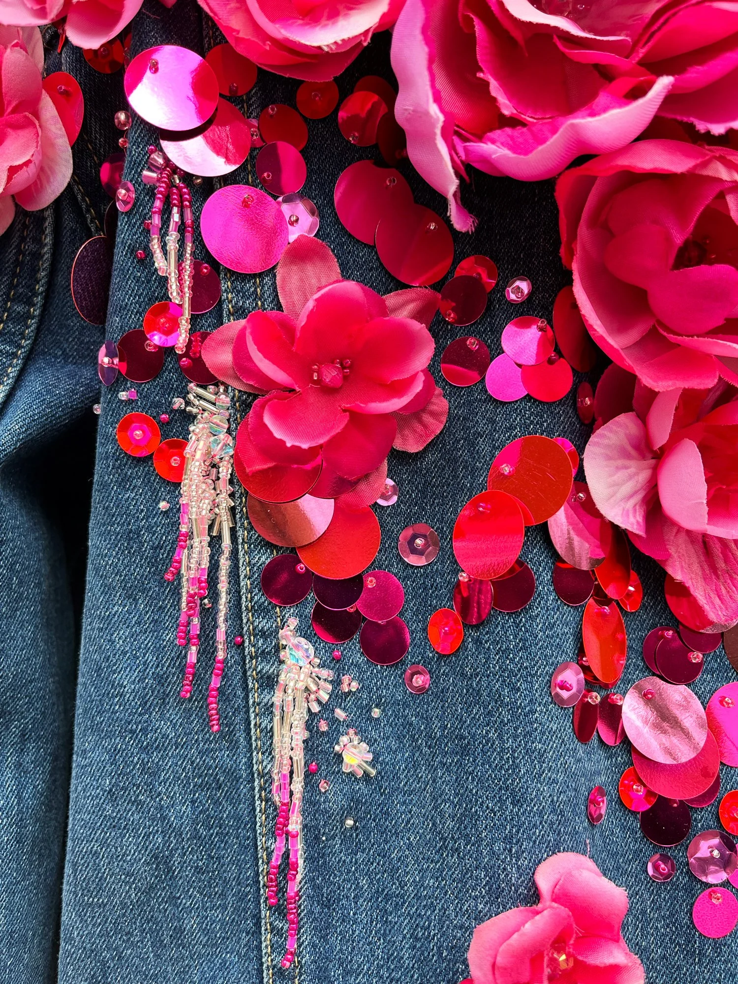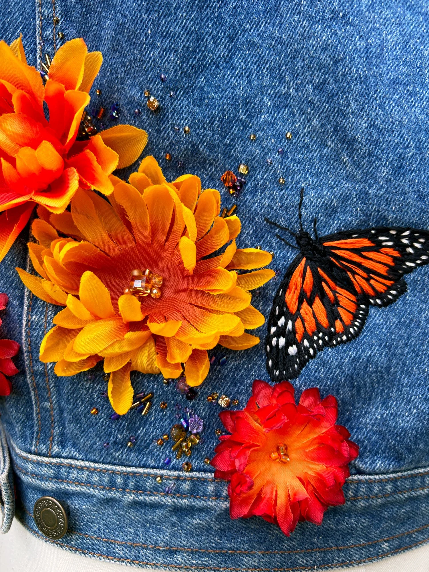 JACKETSWith a custom denim jacket you can do anything – incorporate lace from Grandma’s dress and beads from Mom’s; tell the story of your love with embroidered symbols of your relationship or lyrics to “your song;” go crazy with fabric flowers and crystals and beads – the sky’s the limit!