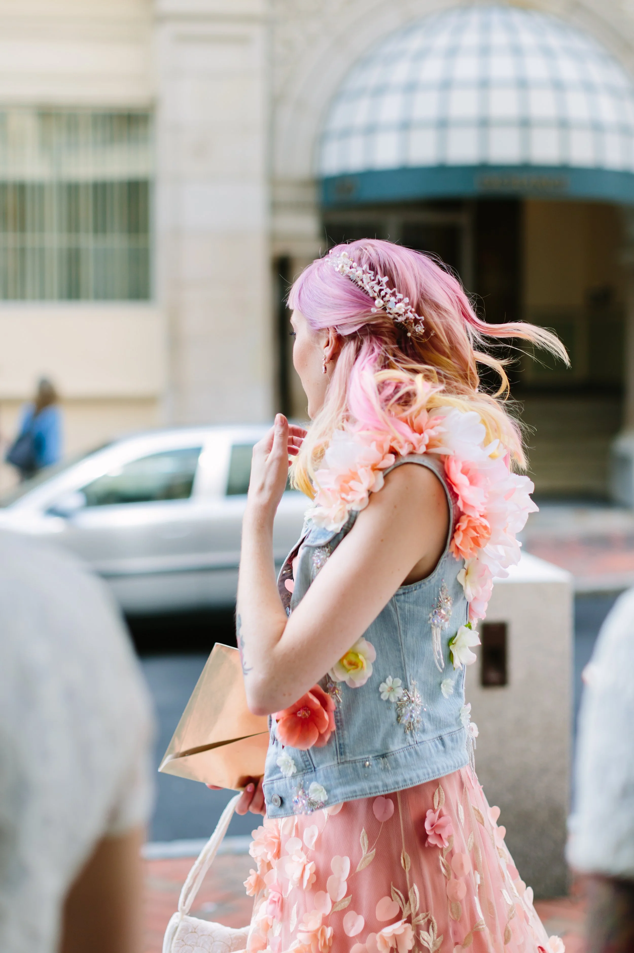 BEYONDI have worked with people getting married to create custom headpieces for bridesmaids, embroidered sneakers, sashes for hand tying ceremonies, hot pink sparkly pouf sleeves, and more. Have an idea? Tell me what you’re thinking, and I’ll tell you if we can make it happen!